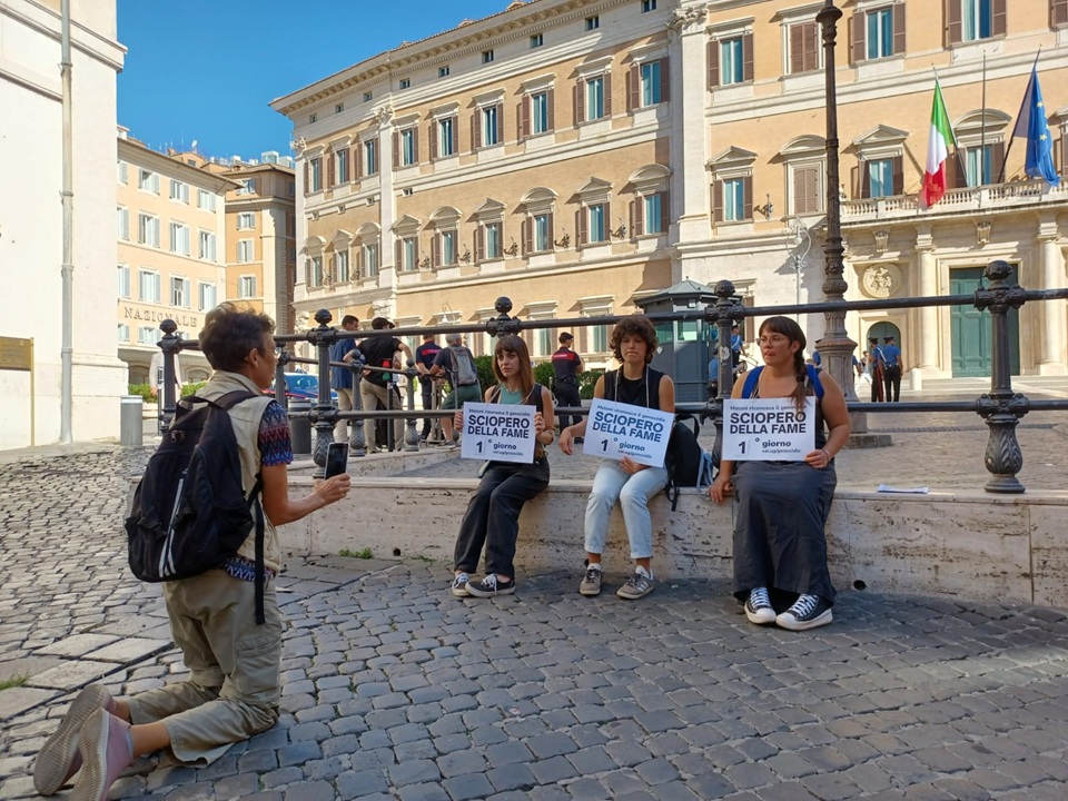 Quattro donne di Ultima Generazione sono state arrestate questa mattina a Montecitorio, mentre annunciavano l’inizio dello sciopero della fame affinché il governo Meloni riconosca il genocidio dei palestinesi.