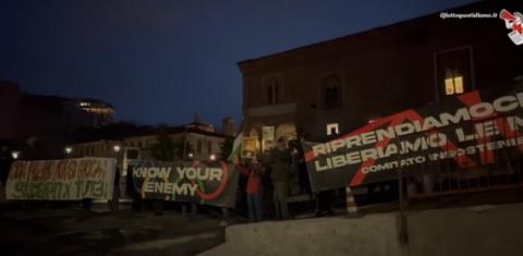 I manifestanti, riuniti al di là dei cancelli dell’Università Statale hanno intonato cori come “Free free Palestine” e protestato contro la partecipazione di Israele ai Giochi, oltre che contro Eni e Leonardo.