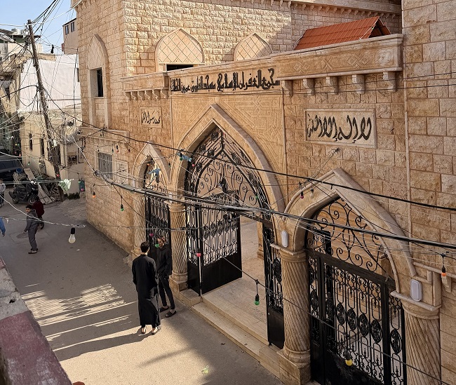 Il permesso giornalistico non basta ad assicurarsi l’ingresso, ma per fortuna Amal aveva ragione e la nostra presenza nelle retrovie passa inosservata. Il campo profughi palestinese non è diverso da tanti altri del Libano. Le strade non sono tentacolari come quelle di Chatila, né claustrofobiche come ad Ain al-Hilwei ma la vita scorre alla stessa maniera. La macchina si ferma proprio davanti alla moschea di Al-Ghufran: dorata e scintillante è la più antica del campo e all’ora della preghiera la strada si riempie di decine di persone. Huda e la sua famiglia ci aspettano affacciati al balcone e dall’alto ci salutano sorridenti.