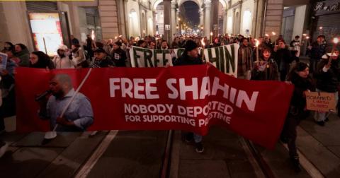 In foto fiaccolata a Torino per la scarcerazione di Mohamed Shahin, imam della moschea Omar Ibn Al Khattab di San Salvario, Torino, novembre 2025. foto di Marioluca Bariona Crediti: M.Bariona
