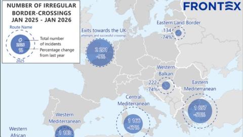 Frontex pubblica i dati degli ingressi irregolari in Ue del mese di gennaio: -60% e 450 decessi nel Mediterraneo