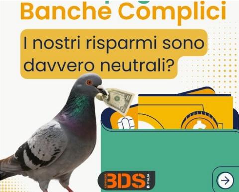 BDS Italia annuncia il lancio della campagna nazionale Banche Complici, inizialmente rivolta a UniCredit, Intesa San Paolo, BNL-BNP Paribas – tra le istituzioni finanziarie italiane più coinvolte, causa operazioni non etiche, in operazioni di supporto nella colonizzazione illegale e nell’apartheid in Palestina, nello sfollamento e genocidio di Israele ora estesi alla Cisgiordania.