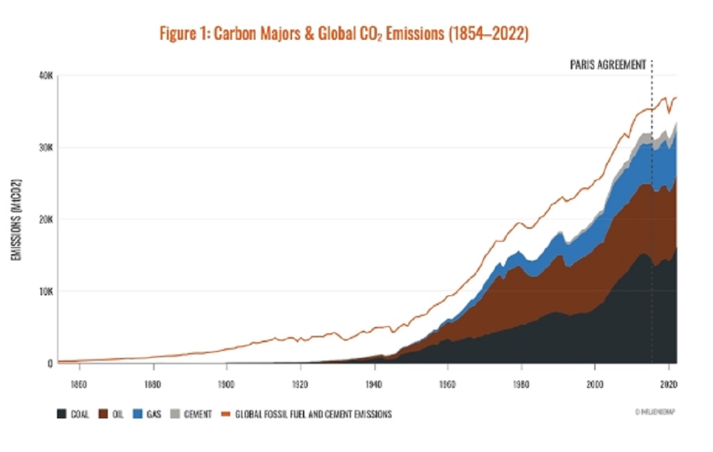 Crescita delle emissioni di CO2 dei principali settori fossili © InfluenceMap via Carbon Majors