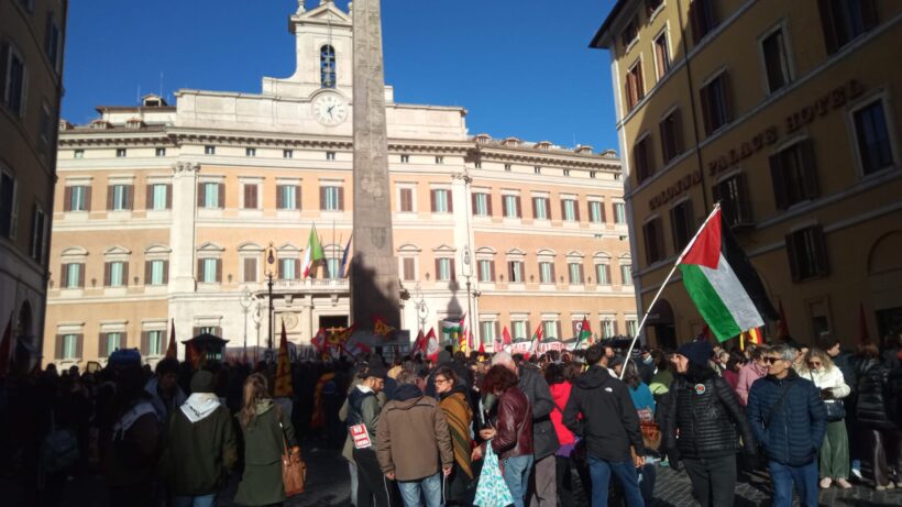 Una volta terminato il corteo, molti manifestanti hanno raggiunto il presidio davanti a Montecitorio, che si è concluso trasmettendo dagli altoparlanti la canzone composta da Roger Waters per lo sciopero di oggi e la manifestazione di domani per la Palestina.