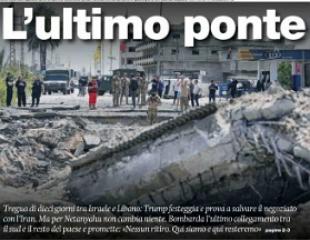 L'ultimo ponte Il cessate il fuoco annunciato da Trump. Nelle ore precedenti Tel Aviv ha bombardato senza sosta. E conferma: restiamo qui