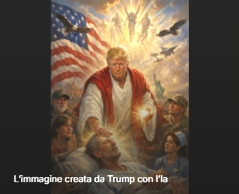 Ma a suscitare davvero scandalo negli Stati uniti è piuttosto il post di poco successivo pubblicato da Trump su Truth Social («il nome stesso del sito è ironico»”, ha osservato papa Leone): un’immagine realizzata con l’intelligenza artificiale in cui il presidente, con gli abiti di Gesù, guarisce un malato con l’imposizione delle mani. Circondato da simboli “patriottici”: soldati, aquile, l’immancabile Statua della libertà. «Blasfemia oltraggiosa», è stata la reazione anche all’interno della destra cristiana che normalmente lo sostiene in tutto e per tutto, anche nella sua volontà di commettere un genocidio in Iran.