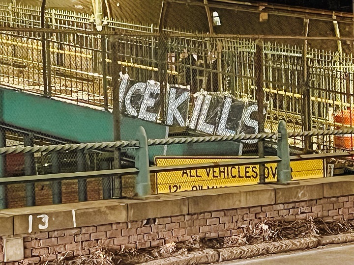 Da quando Trump è tornato in carica, queste azioni si sono diffuse rapidamente. Nei giorni successivi all’uccisione di Renee Nicole Good da parte di un agente dell’ICE a Minneapolis, nel giro di poche ore sono apparsi cartelli di protesta sui cavalcavia in Montana, New Jersey, California, Minnesota e Kentucky.