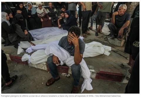 L’INTERA AREA è stata dichiarata «zona di combattimento» e i palestinesi scappano tra le bombe. L’esercito ha detto di aver lanciato le «fasi iniziali» dell’operazione di occupazione. I mezzi pesanti e i robot stanno abbattendo e facendo saltare in area edifici e interi quartieri. Le immagini satellitari fornite da Planet Lab mostrano l’enorme devastazione compiuta a Zeitoun in soli 17 giorni. Le costruzioni che erano rimaste in piedi sono state rase al suolo, mentre gli accampamenti di tende sembrano essere scomparsi. Ma è solo l’inizio. Decine di migliaia di riservisti israeliani hanno ricevuto l’ordine di richiamo per la prossima settimana. E per altri 20mila soldati è stato posticipato il congedo. Venticinque persone sono state uccise ieri a Gaza City ma i bombardamenti hanno fatto vittime in tutta la Striscia. Cinque sono state ammazzate nell’area di al-Mawasi, dove Tel Aviv ha promesso rifugio sicuro alla popolazione deportata. In tutto sono state uccise 58 persone, cinque sono morte di fame. A Deir al-Balah, nel centro di Gaza, l’esercito ha colpito nella notte una casa abitata da sei palestinesi, adiacente alla guest house di Emergency. Gli operatori della ong non sono stati feriti ma non si conosce la sorte della famiglia, composta da quattro bambini. Le macerie hanno bloccato l’ingresso dell’edificio, impedendo il passaggio di veicoli e persone. Emergency gestisce una clinica medica ad al-Qarara, Khan Younis.