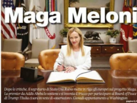 L’Italia entra nel Board of Peace dalla porta di servizio, dribblando l’ostacolo insuperabile che la stessa Meloni aveva a sua volta segnalato: l’art. 11 della Costituzione che permette all’Italia di aderire a organizzazioni internazionali con limitazione di sovranità solo in condizioni di parità. Dunque Giorgia Meloni, giovedì prossimo, sarà a Washington per la prima riunione del bizzarro organismo inventato da Trump. Lo annuncia la stessa premier, da Addis Abeba: «Siamo stati invitati come Paese osservatore e secondo noi è una buona soluzione rispetto al problema che chiaramente abbiamo della compatibilità anche costituzionale con l’adesione al Board». L’invitata è già pronta a garantire la disponibilità del suo Paese anche se di cosa si stia davvero parlando non sa nemmeno lei: «Penso che risponderemo positivamente, a quale livello lo dobbiamo ancora vedere, perché l’invito è arrivato ieri».