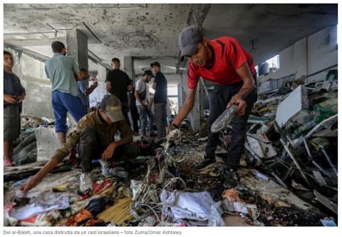 A DEIR AL-BALAH una squadra di vigili del fuoco ha recuperato i corpi di tre persone uccise in un attacco israeliano su una casa. Gli aerei bombardano anche il sud e l’area di al-Mawasi, che Tel Aviv definisce «umanitaria». I missili hanno colpito la tenda che ospitava una famiglia, uccidendo un uomo e sua moglie al settimo mese di gravidanza. Un altro bambino è morto di fame nel nord della Striscia, il 150esimo. Sono 453 i decessi legati alla denutrizione causata dal blocco israeliano di beni umanitari.