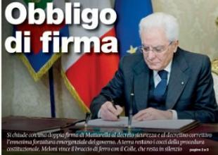 Obbligo di firma Votato in parlamento e subito cambiato in consiglio dei ministri Entra in vigore la forzatura dell’esecutivo: esulta Matteo Salvini. Meloni: «Non è un precedente pericoloso». Servirà l’intervento del Viminale