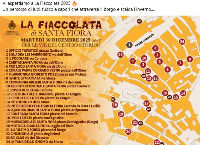 Anche quest’anno si ripete a Santa Fiora il consueto appuntamento con la Fiaccolata, suggestiva festa del fuoco che Martedì 30 dicembre accenderà il borgo amiatino, tra tradizione, gastronomia locale e festeggiamenti fino a notte fonda.