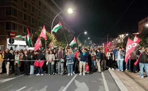 Al termine del corteo gli attivisti si daranno appuntamento a domani quando in consiglio comunale è prevista la seduta straordinaria che sarà interamente dedicata al conflitto israelo-palestinese, alla vigilia dello sciopero generale proclamato per venerdì dalla Cgil e dai sindacati di base Usb e Cub.