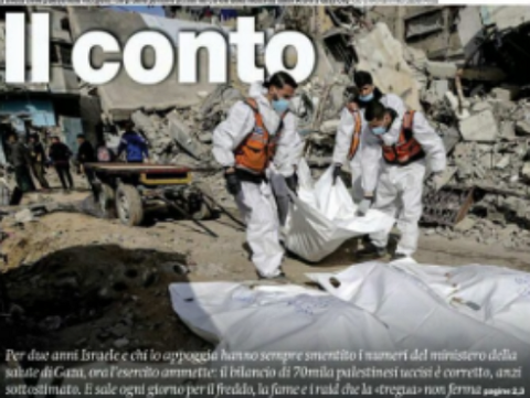 RESTIAMO su quel numero, 71mila, calcolato dal ministero della salute di Gaza tra immense difficoltà, a partire dal collasso del sistema sanitario. Per due anni, noti opinionisti occidentali hanno attraversato giornali e tv per dirci che no, non era attendibile perché proveniente da un’entità di parte, il governo di Gaza, dunque Hamas. A nulla è servita la storia: in tutte le offensive precedenti, i numeri messi a disposizione da quel ministero si sono sempre rivelati esatti.