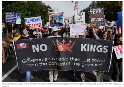 «Questo 18 di ottobre del 2025», ha detto Bernie Sanders che ha chiuso il comizio davanti alla Casa bianca, «ha riunito più persone di sempre nella storia d’America». «Assistiamo oggi ad una classe di miliardari che credono di avere il diritto divino di governare senza contrappesi al loro potere», ha detto il senatore del Vermont ricollegandosi anche lui alla storia nazionale di cui il movimento vuole riappropriarsi. «Abbiamo respinto il diritto divino dei monarchi nel 1700, non abbiamo certo intenzione di estenderlo oggi ai nuovi oligarchi».