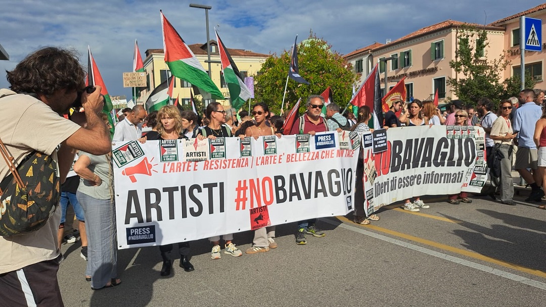 La manifestazione è stata organizzata da un comitato che riunisce oltre 200 associazioni insieme ai centri sociali del Nord Est. Oltre ai centri, alle associazioni come quella degli Artisti No Bavaglio, ai sindacati, l’evento è stato lanciato in particolare dal gruppo Venice4Palestine, fatto di tecnici e lavoratori dello spettacolo. Più di 1.500 artisti e cineasti lo scorso 22 agosto hanno firmato un appello contro il genocidio a Gaza e i crimini contro l’umanità commessi da Israele.