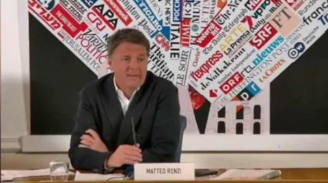 Nella foto: frame del video della conferenza stampa di Matteo Renzi alla Stampa estera