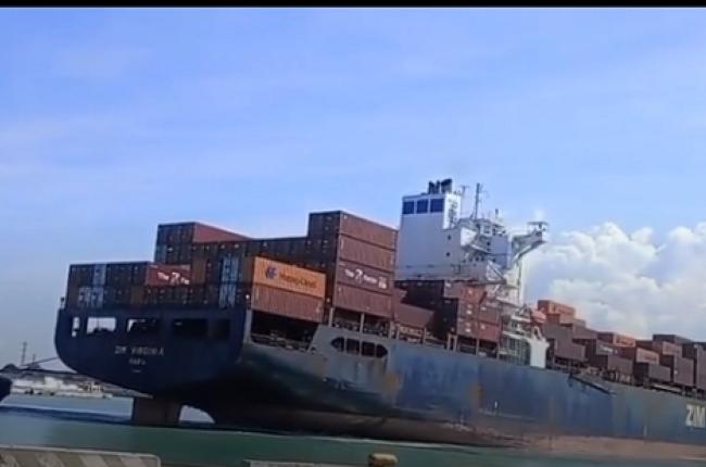 Livorno, la nave della compagnia israeliana Zim Virginia arriva in banchina tra…